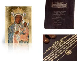Nasze ikony religijne bardzo dobrze wpasują się w wystrój domu, czy świątyni. Dodatkowo możliwość wygrawerowania dowolnej dedykacji sprawia, że wspaniale sprawdzą się jako upominek z okazji ważnych uroczystości tj. Chrzest Święty, Pierwsza Komunia Święta, zawarcie Sakramentu Małżeństwa czy urodziny. Nasza szeroka oferta zawiera ikony religijne z wizerunkami Świętej Rodziny, Najświętszej Maryi Panny, Jezusa Chrystusa, Aniołów czy postacie Świętych i Błogosławionych. Nasze ikony religijne to coś więcej, niż zwykłe obrazy katolickie czy przedstawienia świętych Wieloletnie doświadczenie sprawia, że ikony ze świętymi, znajdujące się w naszej ofercie, dopracowane są w każdym szczególe.