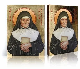Ikona religijna Święta Julia Billiart Na prezentowanej ikonie religijnej znajduje się wizerunek Świętej Julii Billiart. Założycielka zgromadzenia sióstr Najświętszej Maryi Panny z Namur. Od 16 roku pracowała ciężko na roli. Gdy miała 31 lat doznała paraliżu. W 1804 r. podczas nowenny do Najświętszego Serca Jezusowego doznała ozdrowienia, które uznano za cud.