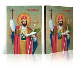 Ikona religijna Święty Bruno Na prezentowanej ikonie religijnej znajduje się wizerunek Świętego Bruno. Święty Bruno urodził się w arystokratycznej rodzinie. W 995 r. został kanonikiem w kapitule katedralnej. Wieść o śmierci św. Wojciecha wpłynęła na decyzję o wstąpieniu przez Świętego do klasztoru benedyktynów św.