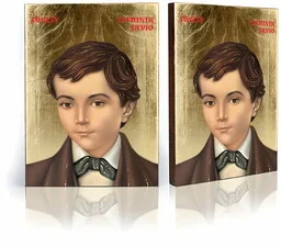 Jest patronem ministrantów i chórów chłopięcych. Ikona religijna dostępna w siedmiu rozmiarach 10x12cm, 10,5x14cm, 12x16cm, 17x23cm, 29x39cm, 50x70cm oraz 70x100cm. Wizerunek bardzo wyrazisty i trwały, naniesiony na ręcznie złoconą deskę drewnianą. Możliwość wygrawerowania dowolnej treści na odwrocie ikony. Informujemy, że niejednolity odcień oraz nieregularna powierzchnia złocenia są zjawiskiem naturalnym ze względu na właściwość materiału oraz ręczne wykonanie.