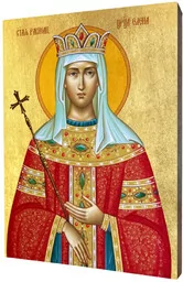 Ikona święta HelenaIkona z wizerunkiem św. Heleny wykonana na desce lipowej, podwójnie gruntowanej oraz uszlachetnionej płatkami pozłoty. Wizerunek św. Heleny został naniesiony przy użyciu specjalnej techniki druku bezpośrednio na deskę. Święta HelenaFlavia Julia Helena Augusta - matka cesarza rzymskiego Konstantyna I.