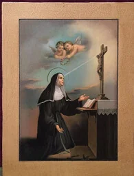 Ikona Święta RitaRęcznie wykonana ikona drewniana (wykonana techniką własną) zapakowana w celofanowy woreczek. Ikona zabezpieczona jest stosownymi preparatami zapobiegającymi jej deformacji w pomieszczeniach o różnych temperaturach i wilgotności. Wymiary: 13 x 17 cmGrubość deski: ok. 17-20 mm
