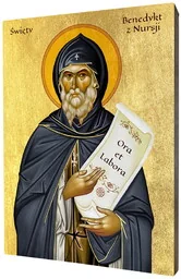 Ikona Świętego Benedykta z Nursji na Desce Lipowej - Doskonała Sztuka Sakralna Wzbogacaj swoje wnętrze o piękno i duchowy wymiar dzięki ikonie Świętego Benedykta z Nursji. Ta starannie wykonana ikona jest symbolem wiary i piękna, idealnym do Twojego domu lub miejsca modlitwy. Najwyższa Jakość i Precyzja Wykonania Ikona dostępna jest w sześciu rozmiarach do wyboru, co pozwala na idealne dopasowanie do Twoich potrzeb i przestrzeni. Wykonana na solidnej desce lipowej, znanej z trwałości i estetyki, łączy tradycyjne techniki z nowoczesnym wykonaniem. Specyfikacja Produktu: