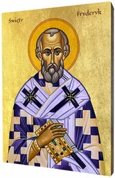 Odkryj Mistycyzm i Sztukę w Ikonie Świętego Fryderyka Zetknij się z Duchowością przez Ikonę Świętego Fryderyka Ta wyjątkowa ikona to nie tylko arcydzieło sztuki sakralnej, ale również potężne narzędzie duchowe, które pomoże Ci zanurzyć się w mistycyzmie i głębokiej wierze. Elegancja i Trwałość: Ikona Świętego Fryderyka na Desce Lipowej z Płatkami Pozłoty Odkryj połączenie elegancji i trwałości w ikonie wykonanej na podwójnie gruntowanej desce lipowej, uszlachetnionej płatkami pozłoty dla dodania blasku i majestatu. Precyzja i Żywe Kolory: Druk Bezpośredni na Desce Technologia druku bezpośredniego na deskę gwarantuje precyzję i żywotność kolorów, co sprawia, że wizerunek Świętego Fryderyka jest jak żywy.