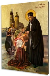 Kim jest Święty Jan Kanty? Święty Jan Kanty: Urodzony w Kętach, Święty Jan Kanty był profesorem teologii i filozofii na Uniwersytecie Jagiellońskim w Krakowie. Słynął z pobożności, skromności oraz dobroczynności, wspierając ubogich i potrzebujących. Jest patronem profesorów i studentów. Idealny Prezent dla Każdego Ta ikona to doskonały wybór na prezent dla bliskiej osoby, która ceni sobie tradycyjne wartości i piękno sztuki sakralnej.