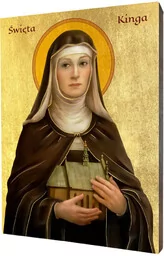 Zarówno kolory poszczególnych obrazów, jak i kolory na zdjęciach mogą się różnić-wynika to z różnorodności dostępnego sprzętu komputerowego oraz jego indywidualnych ustawień a w szczególności ustawień monitora i karty graficznej. Dzięki estetycznemu wykończeniu, ikona religijna świętej Kingi nie wymaga dodatkowej oprawy i może stanowić niezwykły upominek religijny na każdą okazję: podarunek dla księdza lub siostryz okazji Chrztu Świętego,z okazji Pierwszej Komunii Świętej,z okazji Bierzmowaniaz okazji imienin lub urodzinGrafiki naszych ikon pochodzą wyłącznie z legalnych źródeł i zostały zakupione; po przygotowaniu stanowią własność artystyczną Art Christiana. Powielanie bez zgody Art Christiana jest zabronione. Posiadamy własne, autorskie rozwiązana przygotowania drewna, gruntu oraz pozłotnictwa.