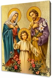 Ikona Świętej RodzinyIkona Świętej Rodziny wykonana na desce lipowej, podwójnie gruntowanej oraz uszlachetnionej płatkami pozłoty. Wizerunek Świętej Rodziny został naniesiony przy użyciu specjalnej techniki druku bezpośrednio na deskę. Ikona z tyłu posiada certyfikat naszej firmy wraz z rokiem produkcji oraz zawieszkę i jest gotowa do zawieszenia; dostępna jest w pięciu rozmiarach; grafika dostosowywana jest do formatu deski przez co może nieznacznie różnić się od zdjęcia produktu: 10x15 cm15x20 cm20x25 cm30x40 cm40x50 cmIkony religijne ART CHRISTIANA - wspaniały upominek religijnyNie stosujemy produkcji masowej. Ikony powstają w chwili złożenia zamówienia, a każdego Klienta traktujemy indywidualnie.