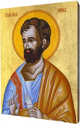 Ikona święty Jakub ApostołIkona świętego Jakuba Apostoła wykonana na desce lipowej, podwójnie gruntowanej oraz uszlachetnionej płatkami pozłoty. Wizerunek świętego Jakuba został naniesiony przy użyciu specjalnej techniki druku bezpośrednio na deskę. Ikona zabezpieczona jest specjalnym werniksem na bazie żywicy. Ikona z tyłu posiada certyfikat naszej firmy wraz z rokiem produkcji oraz zawieszkę typu krokodyl i jest gotowa do zawieszenia; dostępna jest w pięciu rozmiarach; grafika dostosowywana jest do formatu deski przez co może nieznacznie różnić się od zdjęcia produktu: 10x15 cm15x20 cm20x25 cm30x40 cm40x50 cmNie stosujemy produkcji masowej.