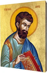 Ikona św. Marek, EwangelistaIkona z wizerunkiem św. Marka wykonana na desce lipowej, podwójnie gruntowanej oraz uszlachetnionej płatkami pozłoty. Wizerunek św. Marka został naniesiony przy użyciu specjalnej techniki druku bezpośrednio na deskę. Ikona z tyłu posiada certyfikat naszej firmy wraz z rokiem produkcji oraz zawieszkę typu krokodyl i jest gotowa do zawieszenia; dostępna jest w pięciu rozmiarach; grafika dostosowywana jest do formatu deski przez co może nieznacznie różnić się od zdjęcia produktu: