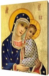 Ikona Matki BożejIkona religijna z Matką Bożą wykonana na desce lipowej, podwójnie gruntowanej oraz uszlachetnionej płatkami pozłoty. Wizerunek Matki Bożej został naniesiony przy użyciu specjalnej techniki druku bezpośrednio na deskę. Ikona z tyłu posiada certyfikat naszej firmy wraz z rokiem produkcji oraz zawieszkę i jest gotowa do zawieszenia; dostępna jest w pięciu rozmiarach; grafika dostosowywana jest do formatu deski przez co może nieznacznie różnić się od zdjęcia produktu: 10x15 cm15x20 cm20x25 cm30x40 cm40x50 cmIkony religijne ART CHRISTIANA - wspaniały upominek religijnyNie stosujemy produkcji masowej. Ikony powstają w chwili złożenia zamówienia, a każdego Klienta traktujemy indywidualnie.
