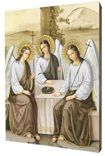 Dokładamy wszelkich starań, aby zdjęcia przedstawiane na ekranie jak najdokładniej odzwierciedlały oryginalne barwy naszych produktów. Zarówno kolory poszczególnych obrazów, jak i kolory na zdjęciach mogą się różnić-wynika to z różnorodności dostępnego sprzętu komputerowego oraz jego indywidualnych ustawień a w szczególności ustawień monitora i karty graficznej. Dzięki estetycznemu wykończeniu, ikona z Trójcą Świętą nie wymaga dodatkowej oprawy i może stanowić niezwykły upominek religijny na każdą okazję: podarunek dla księdza lub siostry z okazji Chrztu Świętego, z okazji Pierwszej Komunii Świętej, z okazji Bierzmowania z okazji imienin lub urodzin Grafiki naszych ikon pochodzą wyłącznie z legalnych źródeł i zostały zakupione; po przygotowaniu stanowią własność artystyczną. Powielanie bez zgody jest zabronione.
