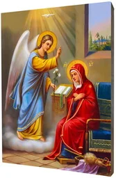 Ikona Zwiastowania Najświętszej Maryi Panny Głębia Wiary i Sztuki Zwiastowanie - Moment Objawienia i Posłannictwa Ikona Zwiastowania Najświętszej Maryi Panny ukazuje jeden z kluczowych momentów w chrześcijaństwie - zwiastowanie Maryi przez Archanioła Gabriela. Ten sceniczny obraz to nie tylko przedstawienie biblijnego wydarzenia, ale także symbol nadziei i wiary. Maryja, przedstawiona w skromnej postawie, słucha anioła, który przekazuje jej wieść o nadchodzącym narodzeniu Jezusa, Syna Bożego. Archanioł Gabriel - Posłaniec Boży Na ikonie Archanioł Gabriel, zwiastun Bożego posłania, przedstawiony jest w dynamicznej pozie, z wyciągniętą ręką w geście mówienia. Jego szaty falują, co dodaje kompozycji dynamiki i podkreśla nadnaturalny charakter sceny.