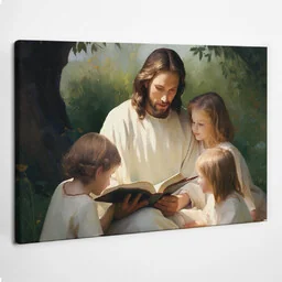 Jezus Chrystus z dziećmi - obraz polycanvas, 60x40