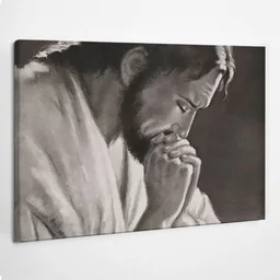 Jezus Modlitwa czarno biały - obraz polycanvas, 60x40