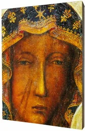 Obraz religijny na desce lipowej, Matka Boska CzęstochowskaObraz religijny z Matką Boską Częstochowską wykonany na lipowej desce, klejonej. Deska do obrazu została odpowiednio przygotowana, zagruntowana oraz pomalowana emalią satynową dzięki czemu nie straci swoich walorów przez długie lata. Obraz z Matką Bożą naniesiony jest dzięki zaawansowanej technice druku bezpośrednio na deskę co gwarantuje wyjątkowo nasycone kolory reprodukcji oraz trwałość co najmniej 100 lat. Obraz na desce dodatkowo został polakierowany na froncie dzięki czemu można go przecierać wilgotną ściereczką. Obraz z tyłu posiada certyfikat naszej firmy wraz z rokiem produkcji oraz zawieszkę typu krokodyl i jest gotowy do zawieszenia.