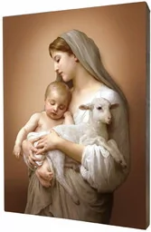 Obraz religijny na desce lipowej, Matka BożaObraz religijny z Matką Bożą wykonany na lipowej desce, klejonej. Deska do obrazu została odpowiednio przygotowana, zagruntowana oraz pomalowana emalią satynową dzięki czemu nie straci swoich walorów przez długie lata. Obraz z Matką Bożą naniesiony jest dzięki zaawansowanej technice druku bezpośrednio na deskę co gwarantuje wyjątkowo nasycone kolory reprodukcji oraz trwałość co najmniej 100 lat. Obraz na desce dodatkowo został polakierowany na froncie dzięki czemu można go przecierać wilgotną ściereczką. Obraz z tyłu posiada certyfikat naszej firmy wraz z rokiem produkcji oraz zawieszkę typu krokodyl i jest gotowy do zawieszenia.
