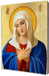 Ikona religijna Matka Boża UmilenijeIkona religijna z Matką Bożą Umilenije wykonana na desce lipowej, podwójnie gruntowanej oraz uszlachetnionej płatkami pozłoty. Wizerunek Matki Bożej Umilenije został naniesiony przy użyciu specjalnej techniki druku bezpośrednio na deskę. Ikona z tyłu posiada certyfikat naszej firmy wraz z rokiem produkcji oraz zawieszkę i jest gotowa do zawieszenia; dostępna jest w pięciu rozmiarach; grafika dostosowywana jest do formatu deski przez co może nieznacznie różnić się od zdjęcia produktu: 10x15 cm15x20 cm20x25 cm30x40 cm40x50 cmIkony religijne ART CHRISTIANA - wspaniały upominek religijnyNie stosujemy produkcji masowej. Ikony powstają w chwili złożenia zamówienia, a każdego Klienta traktujemy indywidualnie.