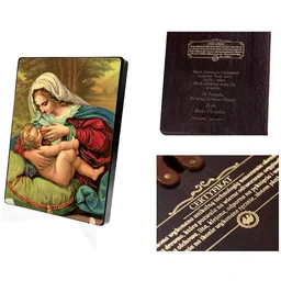 Każda ikona zapakowana w estetyczne pudełko. Produkt wspaniale sprawdzi się jak upominek dla bliskiej osoby. Istnieje możliwość wygrawerowania na odwrocie ikony życzeń, dedykacji. Ikona w rozmiarze 14,5 x 19,5 cm. PRODUKT POLSKI Dedykacja na obrazku Dedykacja na pamiątce - dajemy Państwu możliwość wygrawerowania na odwrocie ikony dedykacji.