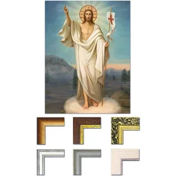 Obraz Chrystus Zmartwychwstały Na obrazie religijnym znajduje się Jezus Chrystus Zmartwychwstały. Dzięki zastosowaniu wysokiej jakości urządzeń drukujących wizerunek charakteryzuje się wspaniałą kolorystyką i wyrazistością, które podkreślają nastrój panujący w obrazie. *podane wymiary dotyczą wizerunków bez ramy - do pełnego rozmiaru należy doliczyć wymiary ramy podane niżej Obrazy Świętej Rodziny, Świętych i Błogosławionych, Ostatnia Wieczerza i wiele innych wizerunków Obrazy religijne to wspaniałej jakości dzieła sakralne, przedstawiające różnego rodzaju sceny powiązane z Biblią oraz wizerunki Świętej Rodziny i Świętych i Błogosławionych. Dostępne w naszej ofercie obrazy religijne cechują się estetycznym wykonaniem, wspaniałą gamą kolorystyczną, ostrością detali i wyjątkową kompozycją. Wydruk wizerunków umożliwia otrzymanie wiernych i trwałych kopii, a szeroki wybór rozmiarów oraz różne formy oprawy sprawiają, że każdy klient może skomponować produkt dokładnie odpowiadający jego preferencjom i potrzebom.
