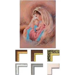 Obraz Matka Boża i Dzieciątko Jezus Obraz religijny przedstawia wizerunek Matki Bożej z Dzieciątkiem Jezus. Dzięki zastosowaniu wysokiej jakości urządzeń drukujących wizerunek charakteryzuje się wspaniałą kolorystyką i wyrazistością, które podkreślają nastrój panujący w obrazie. Obraz religijny dostępny w trzech rozmiarach: 20x25cm, 30x40cm, 50x70cm oraz różnych oprawach. *podane wymiary dotyczą wizerunków bez ramy - do pełnego rozmiaru należy doliczyć wymiary ramy podane niżej Obrazy Świętej Rodziny, Świętych i Błogosławionych, Ostatnia Wieczerza i wiele innych wizerunków Obrazy religijne to wspaniałej jakości dzieła sakralne, przedstawiające różnego rodzaju sceny powiązane z Biblią oraz wizerunki Świętej Rodziny i Świętych i Błogosławionych.