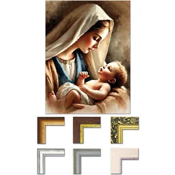 Obraz Matka Boża z Dzieciątkiem Jezus Obraz religijny przedstawia wizerunek Matki Bożej z Dzieciątkiem Jezus. Dzięki zastosowaniu wysokiej jakości urządzeń drukujących wizerunek charakteryzuje się wspaniałą kolorystyką i wyrazistością, które podkreślają nastrój panujący w obrazie. Obraz religijny dostępny w trzech rozmiarach: 20x25cm, 30x40cm, 50x70cm oraz różnych oprawach. *podane wymiary dotyczą wizerunków bez ramy - do pełnego rozmiaru należy doliczyć wymiary ramy podane niżej Obrazy Świętej Rodziny, Świętych i Błogosławionych, Ostatnia Wieczerza i wiele innych wizerunków Obrazy religijne to wspaniałej jakości dzieła sakralne, przedstawiające różnego rodzaju sceny powiązane z Biblią oraz wizerunki Świętej Rodziny i Świętych i Błogosławionych.