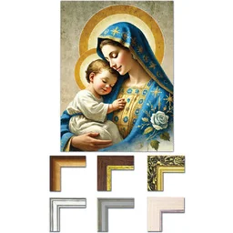 Obraz Matka Boża z Dzieciątkiem Jezus Obraz religijny przedstawia wizerunek Matki Bożej z Dzieciątkiem Jezus. Dzięki zastosowaniu wysokiej jakości urządzeń drukujących wizerunek charakteryzuje się wspaniałą kolorystyką i wyrazistością, które podkreślają nastrój panujący w obrazie. Obraz religijny dostępny w trzech rozmiarach: 20x25cm, 30x40cm, 50x70cm oraz różnych oprawach. *podane wymiary dotyczą wizerunków bez ramy - do pełnego rozmiaru należy doliczyć wymiary ramy podane niżej Obrazy Świętej Rodziny, Świętych i Błogosławionych, Ostatnia Wieczerza i wiele innych wizerunków Obrazy religijne to wspaniałej jakości dzieła sakralne, przedstawiające różnego rodzaju sceny powiązane z Biblią oraz wizerunki Świętej Rodziny i Świętych i Błogosławionych.