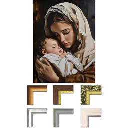 Obraz Matka Boża z Dzieciątkiem Jezus Obraz religijny przedstawia wizerunek Matki Bożej z Dzieciątkiem Jezus. Dzięki zastosowaniu wysokiej jakości urządzeń drukujących wizerunek charakteryzuje się wspaniałą kolorystyką i wyrazistością, które podkreślają nastrój panujący w obrazie. Obraz religijny dostępny w trzech rozmiarach: 20x25cm, 30x40cm, 50x70cm oraz różnych oprawach. *podane wymiary dotyczą wizerunków bez ramy - do pełnego rozmiaru należy doliczyć wymiary ramy podane niżej Obrazy Świętej Rodziny, Świętych i Błogosławionych, Ostatnia Wieczerza i wiele innych wizerunków Obrazy religijne to wspaniałej jakości dzieła sakralne, przedstawiające różnego rodzaju sceny powiązane z Biblią oraz wizerunki Świętej Rodziny i Świętych i Błogosławionych.