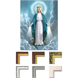 rama drewniana o średnicy 3 cm, rama drewniana ze złotym paskiem o średnicy 4 cm, rama z bogatym ornamentem o średnicy 5 cm, rama vintage biała o średnicy 3 cm, rama vintage szara o średnicy 3 cm oraz rama kremowa o średnicy 4 cm. wizerunki drukujemy za pomocą wysokiej klasy urządzeń drukujących obrazy religijne cechują się wyrazistymi kolorami oraz dopracowaną kompozycją