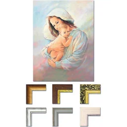 Obraz Matka Boża z Dzieciątkiem Jezus Obraz religijny przedstawia wizerunek Matki Bożej z Dzieciątkiem Jezus. Dzięki zastosowaniu wysokiej jakości urządzeń drukujących wizerunek charakteryzuje się wspaniałą kolorystyką i wyrazistością, które podkreślają nastrój panujący w obrazie. Obraz religijny dostępny w trzech rozmiarach: 20x25cm, 30x40cm, 50x70cm oraz różnych oprawach. *podane wymiary dotyczą wizerunków bez ramy - do pełnego rozmiaru należy doliczyć wymiary ramy podane niżej Obrazy Świętej Rodziny, Świętych i Błogosławionych, Ostatnia Wieczerza i wiele innych wizerunków Obrazy religijne to wspaniałej jakości dzieła sakralne, przedstawiające różnego rodzaju sceny powiązane z Biblią oraz wizerunki Świętej Rodziny i Świętych i Błogosławionych.