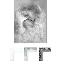 Obraz Matka Boża z Dzieciątkiem Jezus Obraz religijny przedstawia Najświętszą Marię Pannę przytulającą swojego Syna, Jezusa Chrystusa. W powyższym obrazie zastosowano stonowaną gamę kolorystyczną, podkreśloną ostrym zarysem konturów i szczegółów. To połączenie wspaniale oddaje jednoczesną delikatność i subtelność Matki Bożej wraz z jej silną miłością do Syna. Dzięki zastosowaniu wysokiej jakości urządzeń drukujących wizerunek charakteryzuje się wspaniałą kolorystyką i wyrazistością, które podkreślają nastrój panujący w obrazie. Obraz religijny dostępny w trzech rozmiarach: