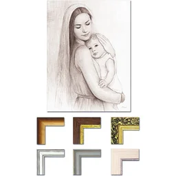 Obraz Matka Boża z Dzieciątkiem Jezus Obraz religijny przedstawia Najświętszą Marię Pannę przytulającą swojego Syna - Jezusa Chrystusa. W powyższym obrazie zastosowano stonowaną gamę kolorystyczną - odcień sepii. To połączenie wspaniale oddaje jednoczesną delikatność i subtelność Matki Bożej wraz z jej silną miłością do Syna. Dzięki zastosowaniu wysokiej jakości urządzeń drukujących wizerunek charakteryzuje się wspaniałą kolorystyką i wyrazistością, które podkreślają nastrój powagi panujący w obrazie. Obraz religijny dostępny w trzech rozmiarach: