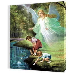 Obraz religijny na płótnie Anioł Stróż Obraz religijny na wysokiej jakości płótnie przedstawia wizerunek Anioła Stróża czuwającego nad dziećmi. Produkt dostępny w czterech rozmiarach: 30x40cm, 35x50cm, 40x60cm, 50x70cm. Obrazy Świętej Rodziny, Świętej Rity, Świętej Faustyny i wiele innych wizerunków Obrazy religijne to wspaniałej jakości dzieła sakralne, przedstawiające różnego rodzaju sceny powiązane z Biblią oraz wizerunki Świętej Rodziny i Świętych i Błogosławionych. Dostępne w naszej ofercie obrazy religijne na płótnie cechują się estetycznym wykonaniem, wspaniałą gamą kolorystyczną, ostrością detali i wyjątkową kompozycją.