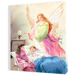 Obraz religijny na płótnie Anioł Stróż Obraz religijny na wysokiej jakości płótnie przedstawia wizerunek Anioła Stróża czuwającego nad zasypiającym dzieckiem. Produkt dostępny w czterech rozmiarach: 30x40 cm, 35x50cm, 40x60cm, 50x70cm. Obrazy Świętej Rodziny, Świętej Rity, Świętej Faustyny i wiele innych wizerunków Obrazy religijne to wspaniałej jakości dzieła sakralne, przedstawiające różnego rodzaju sceny powiązane z Biblią oraz wizerunki Świętej Rodziny i Świętych i Błogosławionych. Dostępne w naszej ofercie obrazy religijne na płótnie cechują się estetycznym wykonaniem, wspaniałą gamą kolorystyczną, ostrością detali i wyjątkową kompozycją.
