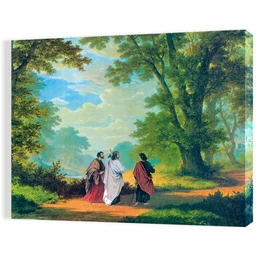 Obraz religijny na płótnie Droga do Emaus Obraz religijny na wysokiej jakości płótnie jest odzwierciedleniem epizodu znajdującego się w Ewangelii Św. Łukasza, w którym dwóch uczniów podróżujących do Emaus napotyka nieznajomego. Podczas wędrówki rozmawiają o niedawnych wydarzeniach, męce i śmierci Jezusa Chrystusa oraz o zniknięcie jego ciała. Ich spotkanie zakończyło się wspólną wieczerzą podczas której uczniowie rozpoznali w nieznajomym samego Jezusa Chrystusa. Produkt dostępny w czterech rozmiarach: