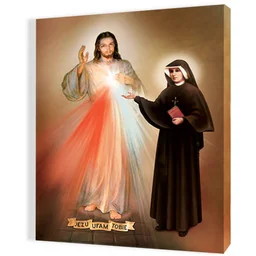Obraz religijny na płótnie Jezu Ufam Tobie, Jezus Miłosierny i Święta Siostra Faustyna Obraz religijny na wysokiej jakości płótnie przedstawia wizerunek Jezusa Miłosiernego i Świętej Siostry Faustyny. Produkt dostępny w czterech rozmiarach: 30x40cm, 35x50cm, 40x60cm, 50x70cm. Obrazy Świętej Rodziny, Świętej Rity, Świętej Faustyny i wiele innych wizerunków Obrazy religijne to wspaniałej jakości dzieła sakralne, przedstawiające różnego rodzaju sceny powiązane z Biblią oraz wizerunki Świętej Rodziny i Świętych i Błogosławionych. Dostępne w naszej ofercie obrazy religijne na płótnie cechują się estetycznym wykonaniem, wspaniałą gamą kolorystyczną, ostrością detali i wyjątkową kompozycją.