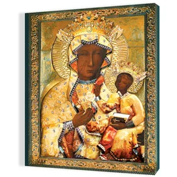 Obraz religijny na płótnie Matka Boża Częstochowska w sukni Bursztynowo - Brylantowej Obraz religijny na wysokiej jakości płótnie przedstawia wizerunek Matki Bożej Częstochowskiej w sukni bursztynowo - brylantowej. Zwana też sukienką zawierzenia Totus Tubus, powstała w 2005 roku. Jest to uhonorowanie 350. rocznicy Obrony Jasnej Góry przed Szwedami (1655 r.), podziękowaniem za życie i pontyfikat Jana Pawła II oraz za 25-lecie powstania "Solidarności". Inspiracją do powstania sukienki były również korony papieskie, które Jan Paweł II pobłogosławił i przekazał dla jasnogórskiego wizerunku 1 kwietnia 2005 r.