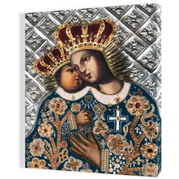Obraz religijny na płótnie Matka Boża Kalwaryjska Obraz religijny na wysokiej jakości płótnie przedstawia wizerunek Matki Bożej Kalwaryjskiej. Data i wydarzenia związane z powstaniem Obrazu Matki Bożej Kalwaryjskiej nie są znane. Według legendy, 3 maja 1641 r. Stanisław Paszkowski podczas modlitwy zauważył spływające z oczu Najświętszej Maryi Panny krwawe łzy. Gdy o zdarzeniu został powiadomiony biskup z Krakowa właściciel został poproszony o podarowanie obrazu kościołowi w Marcyporębie.