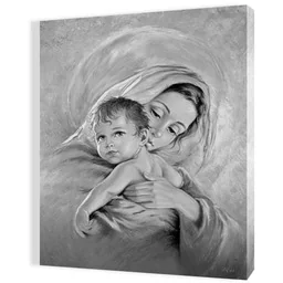 Obraz religijny na płótnie Matka Boża z Dzieciątkiem Jezus Obraz religijny na wysokiej jakości płótnie z wizerunkiem Najświętszej Maryi Panny z Dzieciątkiem Jezus. Produkt dostępny w czterech rozmiarach: 30x40 cm, 35x50cm, 40x60cm, 50x70cm. Obrazy Świętej Rodziny, Świętej Rity, Świętej Faustyny i wiele innych wizerunków Obrazy religijne to wspaniałej jakości dzieła sakralne, przedstawiające różnego rodzaju sceny powiązane z Biblią oraz wizerunki Świętej Rodziny i Świętych i Błogosławionych. Dostępne w naszej ofercie obrazy religijne na płótnie cechują się estetycznym wykonaniem, wspaniałą gamą kolorystyczną, ostrością detali i wyjątkową kompozycją.