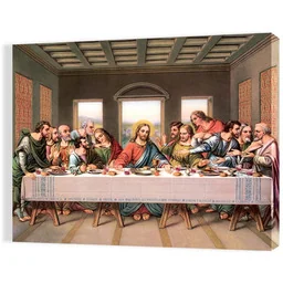 Obraz religijny na płótnie Ostatnia Wieczerza Obraz religijny na wysokiej jakości płótnie przedstawia scenę Ostatniej Wieczerzy. Produkt dostępny w czterech rozmiarach: 30x40cm, 35x50cm, 40x60cm, 50x70cm. Obrazy Świętej Rodziny, Świętej Rity, Świętej Faustyny i wiele innych wizerunków Obrazy religijne to wspaniałej jakości dzieła sakralne, przedstawiające różnego rodzaju sceny powiązane z Biblią oraz wizerunki Świętej Rodziny i Świętych i Błogosławionych. Dostępne w naszej ofercie obrazy religijne na płótnie cechują się estetycznym wykonaniem, wspaniałą gamą kolorystyczną, ostrością detali i wyjątkową kompozycją.