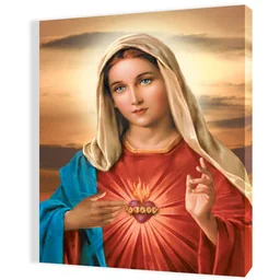 Obraz religijny na płótnie Serce Maryi Obraz religijny na wysokiej jakości płótnie przedstawia wizerunek Niepokalanego Serca Najświętszej Maryi Panny. Produkt dostępny w czterech rozmiarach: 30x40cm, 35x50cm, 40x60cm, 50x70cm. Obrazy Świętej Rodziny, Świętej Rity, Świętej Faustyny i wiele innych wizerunków Obrazy religijne to wspaniałej jakości dzieła sakralne, przedstawiające różnego rodzaju sceny powiązane z Biblią oraz wizerunki Świętej Rodziny i Świętych i Błogosławionych. Dostępne w naszej ofercie obrazy religijne na płótnie cechują się estetycznym wykonaniem, wspaniałą gamą kolorystyczną, ostrością detali i wyjątkową kompozycją.