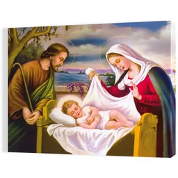 Obraz religijny na płótnie Święta Rodzina Obraz religijny na wysokiej jakości płótnie przedstawia wizerunek Świętej Rodziny. Produkt dostępny w czterech rozmiarach: 30x40 cm, 35x50cm, 40x60cm, 50x70cm. Obrazy Świętej Rodziny, Świętej Rity, Świętej Faustyny i wiele innych wizerunków Obrazy religijne to wspaniałej jakości dzieła sakralne, przedstawiające różnego rodzaju sceny powiązane z Biblią oraz wizerunki Świętej Rodziny i Świętych i Błogosławionych. Dostępne w naszej ofercie obrazy religijne na płótnie cechują się estetycznym wykonaniem, wspaniałą gamą kolorystyczną, ostrością detali i wyjątkową kompozycją.