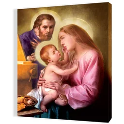 Obraz religijny na płótnie Święta Rodzina Obraz religijny na wysokiej jakości płótnie przedstawia wizerunek Świętej Rodziny. Produkt dostępny w czterech rozmiarach: 30x40cm, 35x50cm, 40x60cm, 50x70cm. Obrazy Świętej Rodziny, Świętej Rity, Świętej Faustyny i wiele innych wizerunków Obrazy religijne to wspaniałej jakości dzieła sakralne, przedstawiające różnego rodzaju sceny powiązane z Biblią oraz wizerunki Świętej Rodziny i Świętych i Błogosławionych. Dostępne w naszej ofercie obrazy religijne na płótnie cechują się estetycznym wykonaniem, wspaniałą gamą kolorystyczną, ostrością detali i wyjątkową kompozycją.