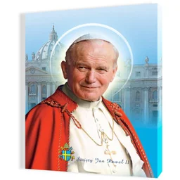 Obraz religijny na płótnie Święty Jan Paweł II Obraz religijny na wysokiej jakości płótnie przedstawia wizerunek Świętego Jana Pawła II. Produkt dostępny w czterech rozmiarach: 30x40cm, 35x50cm, 40x60cm, 50x70cm. Obrazy Świętej Rodziny, Świętej Rity, Świętej Faustyny i wiele innych wizerunków Obrazy religijne to wspaniałej jakości dzieła sakralne, przedstawiające różnego rodzaju sceny powiązane z Biblią oraz wizerunki Świętej Rodziny i Świętych i Błogosławionych. Dostępne w naszej ofercie obrazy religijne na płótnie cechują się estetycznym wykonaniem, wspaniałą gamą kolorystyczną, ostrością detali i wyjątkową kompozycją.