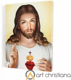 Obraz religijny Serce Jezusa, płótno canvas Obraz religijny na płótnie typu canvas przedstawiający jeden z najbardziej znanych wizerunków przedstawiających Serce Jezusa, obraz bazuje na wizerunku Jezusa Miłosiernego znajdującego się w sanktuarium w krakowskich Łagiewnikach. Obraz religijny na płótnie canvas z wizerunkiem Jezusa z otwartym sercem się może stanowić doskonały prezent, z pewnością wniesie do pomieszczenia ciepło i kolor a także może być pomocą w codziennej modlitwie. Nasze obrazy religijne na płótnie Nie stosujemy produkcji masowej. Obrazy powstają w chwili złożenia zamówienia, a każdego Klienta traktujemy indywidualnie. Gwarantuje to produkt na najwyższym poziomie i doskonałą jakość obsługi.