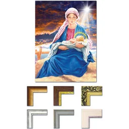 rama drewniana o średnicy 3 cm, rama drewniana ze złotym paskiem o średnicy 4 cm, rama z bogatym ornamentem o średnicy 5 cm, rama vintage biała o średnicy 3 cm, rama vintage szara o średnicy 3 cm oraz rama kremowa o średnicy 4 cm. wizerunki drukujemy za pomocą wysokiej klasy urządzeń drukujących obrazy religijne cechują się wyrazistymi kolorami oraz dopracowaną kompozycją
