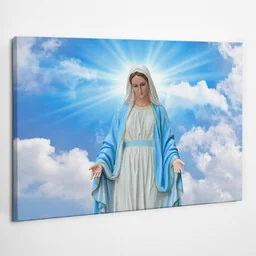 Statua Matki Bożej Łaskawej na niebie - obraz polycanvas, 80x60