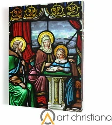Święta Rodzina, obraz religijny na płótnie Obraz religijny na płótnie typu canvas przedstawiający Świętą Rodzinę w stylu witrażowym. Obraz z motywem Świętej Rodziny może stanowić doskonały prezent, z pewnością wniesie do pomieszczenia ciepło i kolor a także może być pomocą w codziennej modlitwie. Nasze obrazy religijne na płótnie Nie stosujemy produkcji masowej. Obrazy powstają w chwili złożenia zamówienia, a każdego Klienta traktujemy indywidualnie. Gwarantuje to produkt na najwyższym poziomie i doskonałą jakość obsługi.