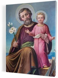 Święty Józef, obraz religijny na płótnie canvas Obraz religijny na płótnie typu canvas przedstawiający świętego Józefa z Dzieciątkiem Jezus. Obraz świętego Józefa z Dzieciątkiem Jezus może stanowić doskonały prezent, z pewnością wniesie do pomieszczenia ciepło i kolor a także może być pomocą w codziennej modlitwie. Nasze obrazy religijne na płótnie Nie stosujemy produkcji masowej. Obrazy powstają w chwili złożenia zamówienia, a każdego Klienta traktujemy indywidualnie. Gwarantuje to produkt na najwyższym poziomie i doskonałą jakość obsługi.