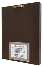 Specyfikacja: Materiał: Deska lipowa Technika złocenia: Ręcznie, przy użyciu szlagmetalu Technika nadruku: Druk UV Powierzchnia: Zabezpieczona werniksem Dostępne rozmiary: