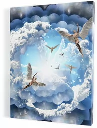 Taniec Aniołów, obraz na płótnie canvas Obraz religijny na płótnie typu canvas przedstawiający postaci Aniołów. Obraz z wizerunkiem Anioła może stanowić doskonały prezent, z pewnością wniesie do pomieszczenia ciepło i kolor a także może być pomocą w codziennej modlitwie. Nasze obrazy religijne na płótnie Nie stosujemy produkcji masowej. Obrazy powstają w chwili złożenia zamówienia, a każdego Klienta traktujemy indywidualnie. Gwarantuje to produkt na najwyższym poziomie i doskonałą jakość obsługi.